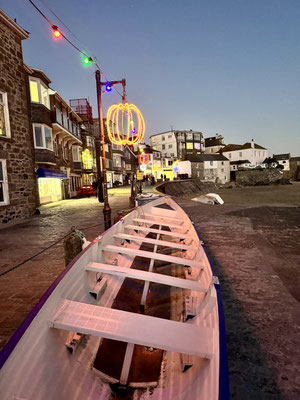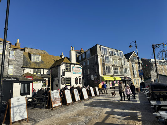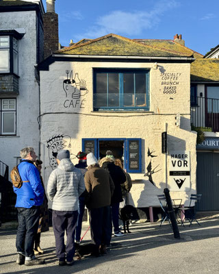 Heiligabend ist hier ein Flanier- und Sonnengeniesser-Tag. Wir lassen uns durch St Ives treiben, durch schmale Gässchen, und entdecken tatsächlich eine Passage, durch die wir noch nie gelaufen sind. Window-Shopping gehört natürlich dazu, inklusive mentaler Notizen, wo wir nach Weihnachten im Sale nochmals vorbeischauen wollen. Ein heisses Getränk to go, ein Päuschen auf einer sonnigen Bank, mehr braucht es nicht.
