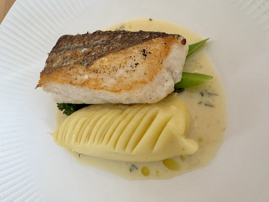 Uns zieht es heute zum Lunch ins Porthminster Beach Café. Ein mehrfach ausgezeichnetes Restaurant direkt am Strand, bekannt für seine innovative, mediterran und asiatisch beeinflusste Fischküche sowie den hauseigenen Gemüsegarten. Und weil der Fisch hier schlicht hervorragend ist, schwenken wir spontan vom klassischen Sunday Roast auf den Catch of the Day. Eine sehr, sehr, sehr gute Entscheidung. Der Hake war sensationell.
