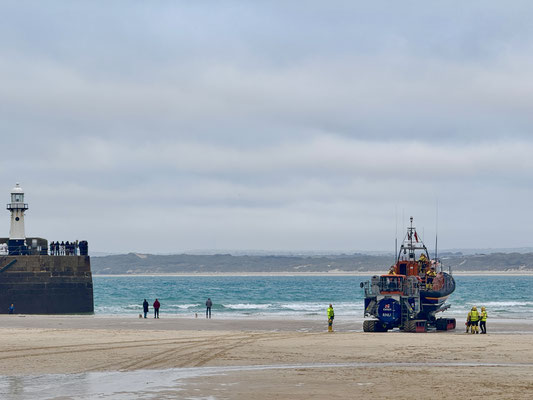 Vom Prinzip her vergleichbar mit unserer freiwilligen Feuerwehr: top ausgebildete Zivilpersonen auf Pikett, die im Ernstfall alles stehen und liegen lassen. In St Ives, erste dokumentierte Einsätze gab es bereits in den 1860er-Jahren, sind zwei Boote stationiert: