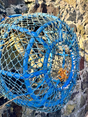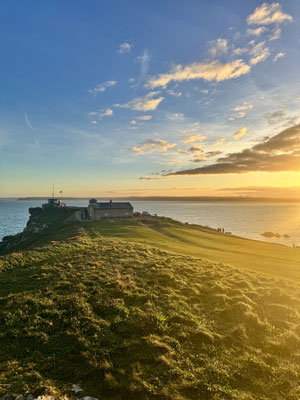 Heute schlägt er zu. Und wie. Als der kleine Kiosk endlich um 10 Uhr öffnet, sind wir schon fast zwei Stunden unterwegs. Zwei Egg Baps und zwei Kaffees später ist die Welt wieder in Ordnung. Kaum sind wir fertig mit Essen, positioniert sich ein Herr mit Fernglas, Kamera und offiziell aussehender Weste nur wenige Meter neben uns. Er weist Fussgänger auf alternative Wege hin. Ein Rettungseinsatz läuft. Ein Baby-Seehund! Allein, untergewichtig, die Mutter nirgends in Sicht. Kurz darauf treffen zwei Mitglieder der "British Divers Marine Life Rescue ein", eine davon Tierärztin. Eigentlich würden wir gerne bleiben, bis der Kleine gerettet ist, aber der Einsatz zieht sich. Good luck, Kleiner! 2026 wird dein Jahr!