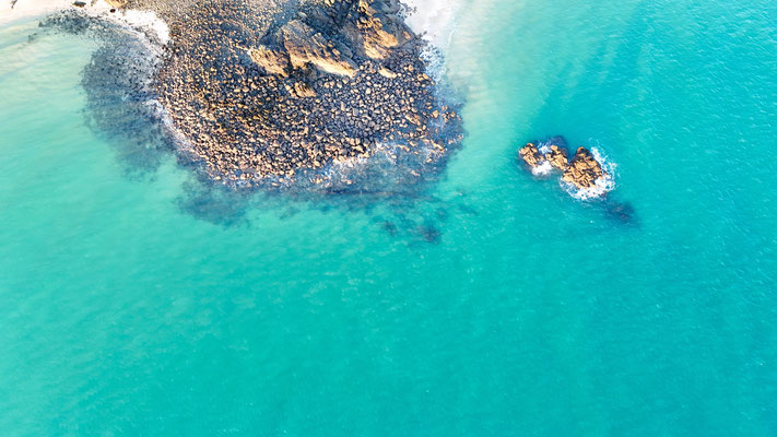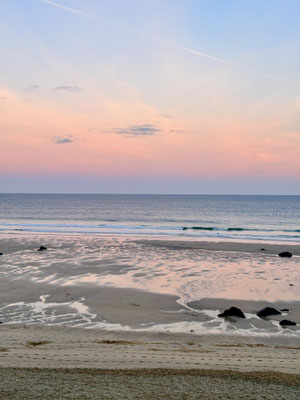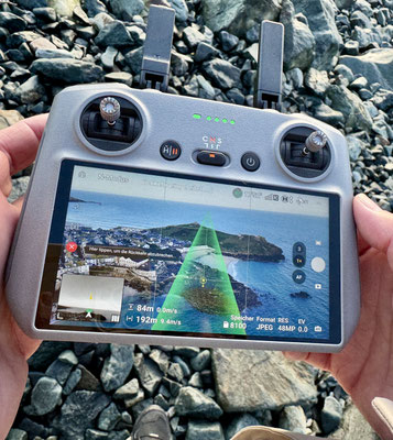 Wir sind zu Fuss unterwegs, lassen die Drohne steigen und landen schliesslich auf meiner absoluten Lieblingsbank am Portgwidden Beach. Der Strand wird auch «the family beach» genannt: eine kleine Bucht, übersichtlich und perfekt geschützt. Als ich vor ein paar Jahren vier Wochen alleine in St Ives war, sass ich hier fast täglich, mal kurz, mal länger. Die Ausrichtung zur Sonne ist am Vormittag unschlagbar. Viele meiner Skizzen sind genau hier entstanden. Und etwa 40 Meter von der Bank entfernt gibt’s auch noch Frühstück to go, falls der Hunger zuschlägt.