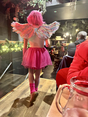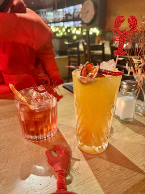Die Stimmung ist fantastisch. Alle sind super chatty, gut gelaunt und respektvoll. Die Kostüme sind ein Highlight, es macht einfach riesig Spass. Das hätte ich nicht gedacht, ich hasse eigentlich Verkleiden! Die Cocktails im Firehouse sind absolut weltklasse, das Essen fein, fällt im Vergleich zu allem, was wir hier bisher hatten, aber leicht ab. Es ist hier aber auch der Teufel los, Küche und Service ackern im Akkord! Selbstverständlich ist auch die Restaurant Crew verkleidet!