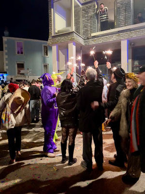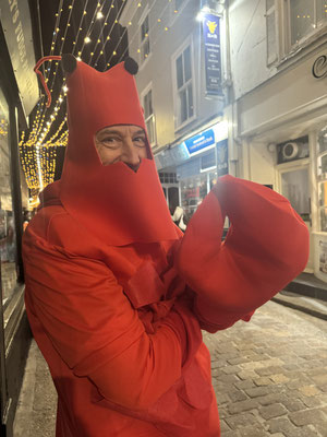 Am Abend steht Late Dinner im Firehouse an. Davor tauchen wir ein erstes Mal ins Getümmel ein und damit in die drittgrösste Silvesterparty Grossbritanniens (nur London und Edinburgh sind grösser). Rund 40’000 Menschen feiern heute Abend gemeinsam rund ums Hafenbecken. Und ja, natürlich sind wir verkleidet. Und ja, natürlich thematisch passend: We are the Lobsters! Noch gestern Abend haben wir den letzten Schliff an den Kostümen gemacht. Und ich habe tatsächlich meine Näh-Skills aus der dritten Oberstufe reaktiviert! Mich dünkt, ich habe früher das Nadelöhr beim Einfädeln auch schon besser gesehen. Täuscht aber vermutlich, früher war ja nicht alles besser!